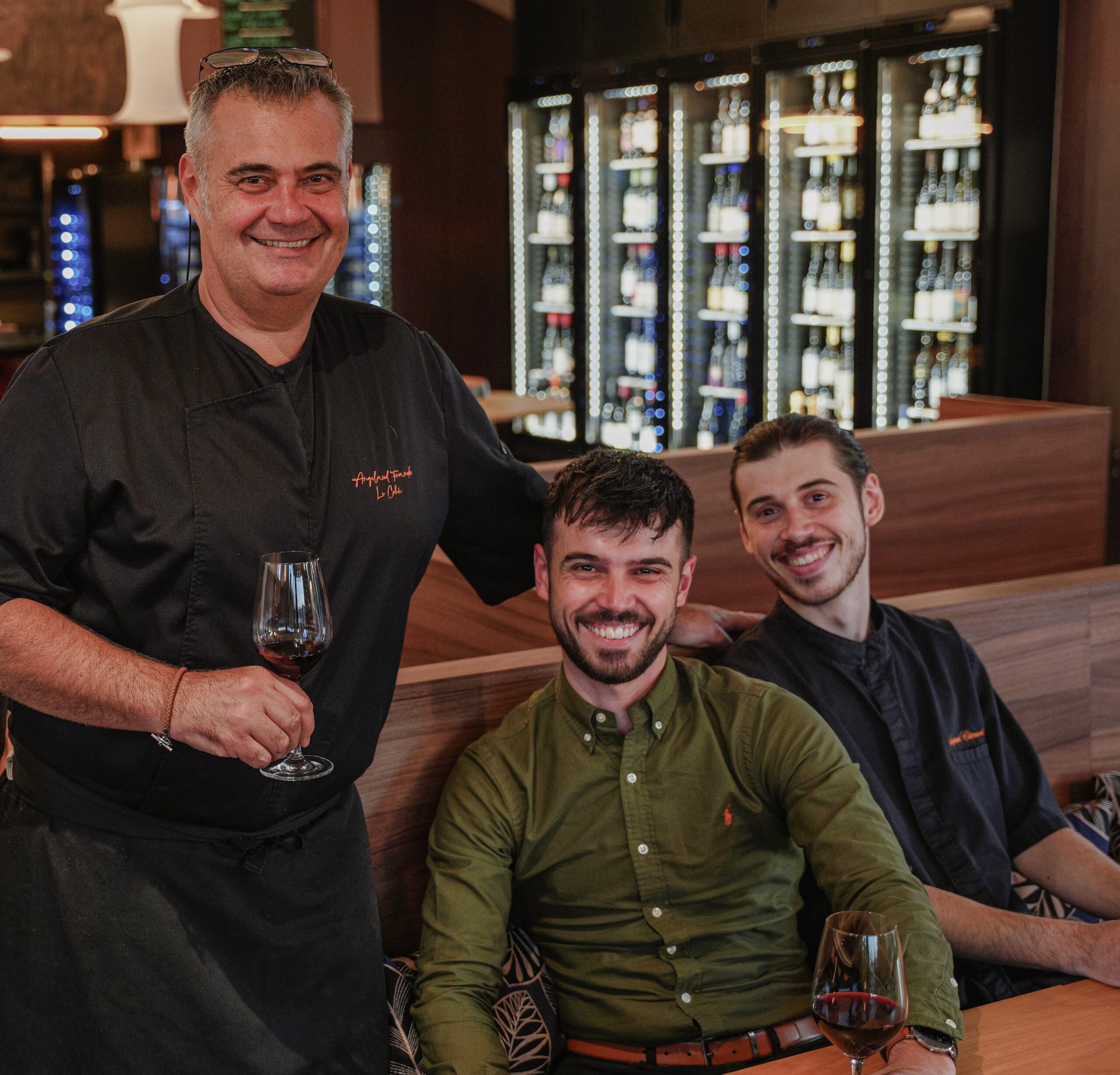Le Maître Restaurateur Franck Angelaud et ses fils, forts de leur expérience dans le monde de la restauration et la gastronomie, mettent leur savoir-faire unique au service de leurs convives, chacun dans son domaine, travaillant ensemble main dans la main avec équilibre, maîtrise et amour.